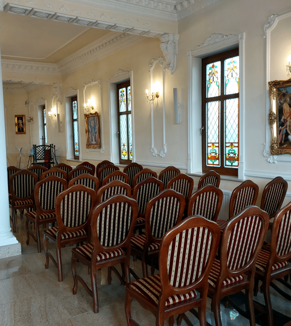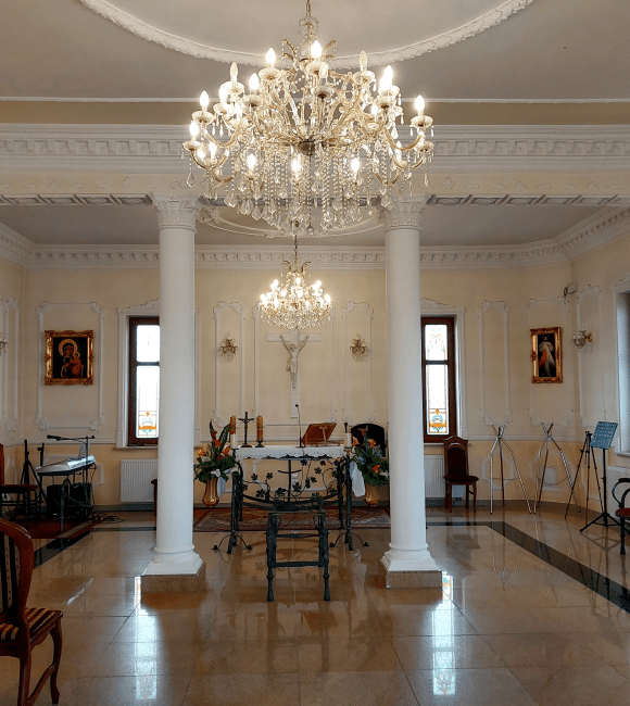 W budynku utrzymanym w stylu klasycznego pałacu znajduje się Kaplica oraz Sala Różana, w której istnieje możliwość organizacji konsolacji. Dbamy o to, by w tych trudnych chwilach jak najpełniej pomóc naszym klientom w organizacji uroczystości.